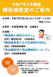 2025/3/4(火) 糖尿病教室開催のお知らせ